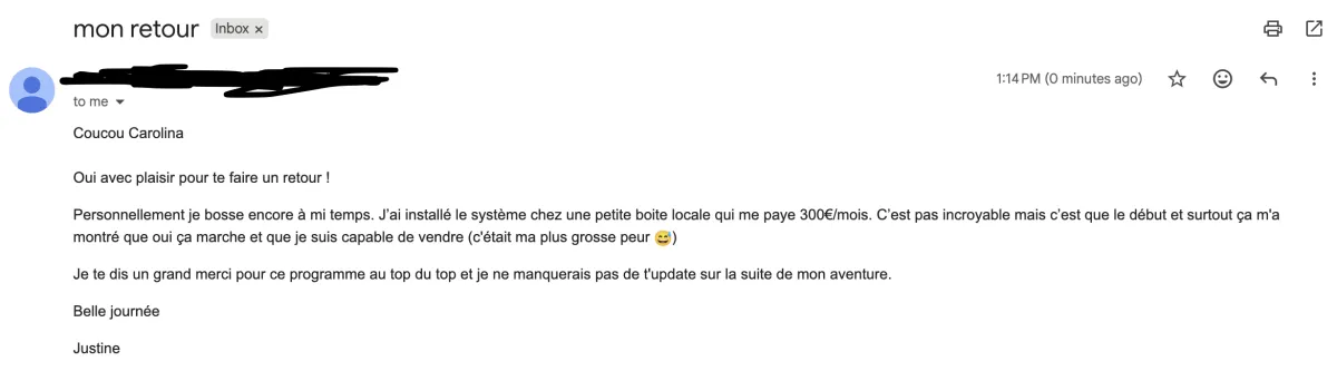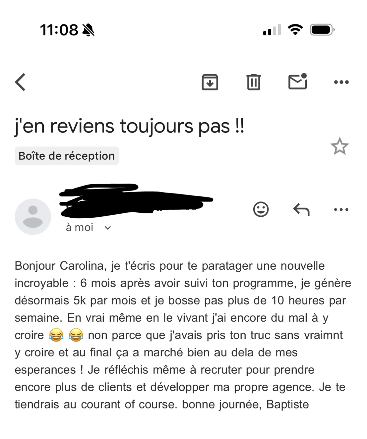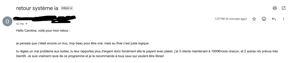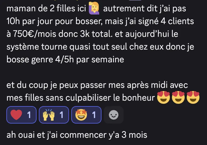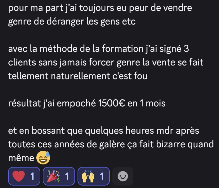 Si tu appliques le plan, certains obtiennent un premier client en quelques jours ou semaines. Tout dépend de ton implication.